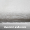 Pluszowe runo zapewnia delikatny poliestrowy włos przypominający w dotyku królicze futerko. Stąpając po dywanie runo zapada się, a my doświadczamy miękkiego i przyjemnego dotyku, otulającego cała stopę. Jest to świetne rozwiązanie w pomieszczeniach naszych maluchów.